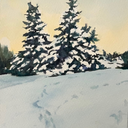 Mainly a landscape painter, Ellen is attracted to the shape and color relationships of the earth, especially in the early morning or during the last hour of the day. Her subjects are chosen based on her response to them, such as the way the light rakes across the foreground, or the way the clouds linger in the sky at the end of the day. The landscape never fails to move her. Ellen is drawn again and again to the imagery along the Hudson River and the Palisades, near her former home in upstate New York, for her landscapes. Since moving to New Market, New Hampshire, Ellen has many new venues to explore.