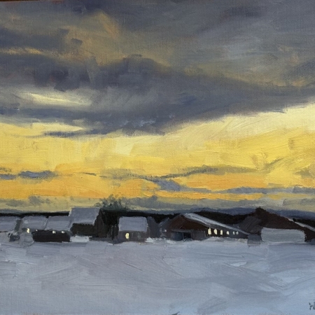 Hannah is an alum of Bates College school of art and lives with her husband on their goat farm is rural Salisbury, Vermont. She finds farm life to be an inspiration for her Vermont paintings. Her images have made her a favorite of the gallery.